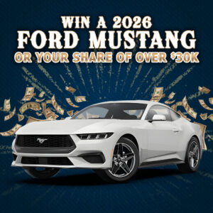 WIN A 2026 FORD MUSTANG OR YOUR SHARE OF OVER $30K DECEMBER 5th-27th DRAWINGS FRIDAYS & SATURDAYS AT 7PM & 9PM 10 Base Points = 1 Entry Become a “key” finalist in one of our weekend drawings and qualify for the Finale Drawing on New Year’s Eve. NEW YEAR’S EVE DRAWINGS DECEMBER 31ST AT 5PM, …